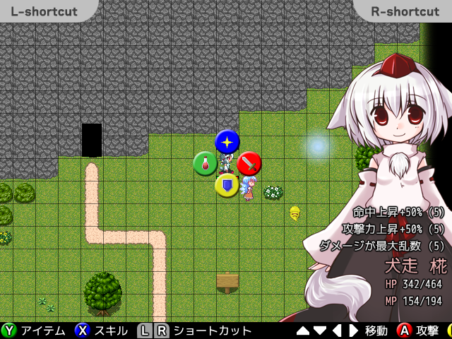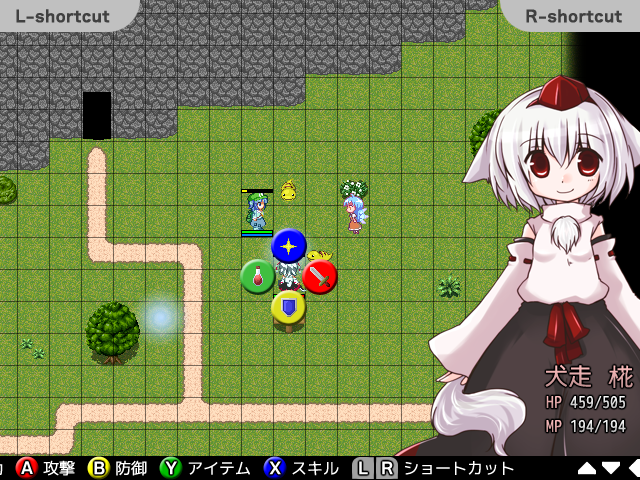 戦闘中にLボタンかRボタンを押すと、登録されているショートカットを表示します。