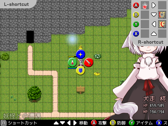 LRボタンとどれかのボタンを押すと、登録されているショートカットの行動をします。
